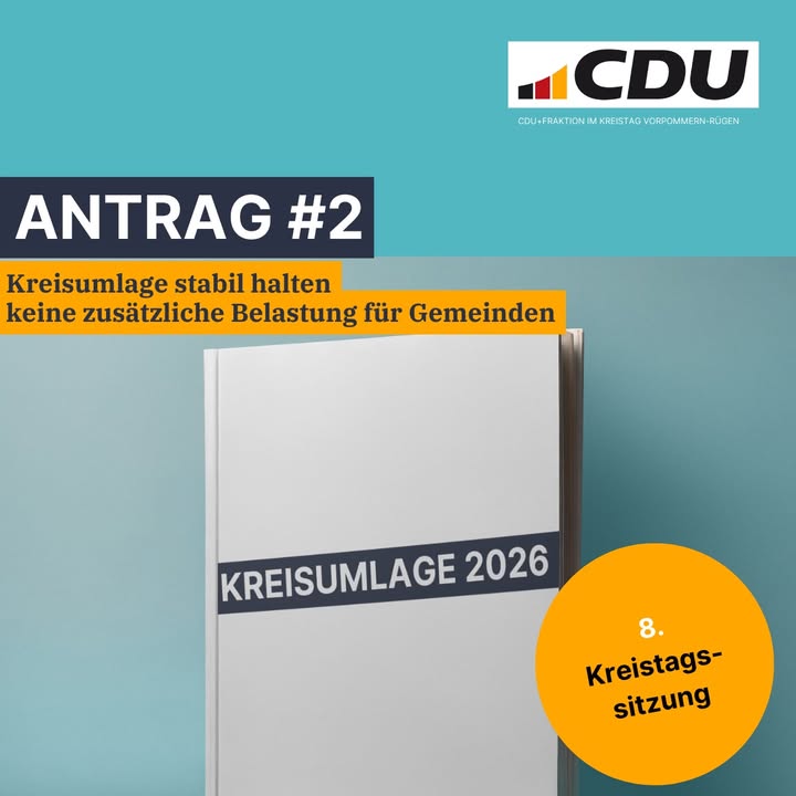 mehr💶 Antrag #2: Kreisumlage stabil halten ? keine zusätzliche Belastung für GemeindenMit unserem Änderungsantrag der Kreistagsfraktionen CDU+ und BfS/FDP/VR+ setzen wir uns dafür ein, die Kreisumlage 2026 bei 42,09 % zu belassen.In einer Zeit, in der Kommunen ohnehin unter steigenden Kosten, Investitionsdruck und Personallasten stehen, braucht es Planungssicherheit statt neuer Belastungen.➡️ Warum das wichtig ist:- Gemeinden behalten mehr finanziellen Spielraum- Investitionen vor Ort bleiben möglich- Vereine, Feuerwehren, Kitas und soziale Einrichtungen profitieren- Stabilität für Bürgerinnen und Bürger ? keine indirekten Abgabenerhöhungen- Verantwortungsvoller Umgang mit den eigenen HaushaltsrisikenUnsere Haltung ist klar:Starke Kommunen brauchen stabile Rahmenbedingungen.Darum sagen wir Ja zu einer verlässlichen Kreisumlage ? und Nein zu zusätzlichen Belastungen für Städte und Gemeinden.#CDUFraktionVR #Haushalt #Finanzen #Kreisumlage #Kommunen #VorpommernRügen #Kommunalpolitik #StarkeGemeinden