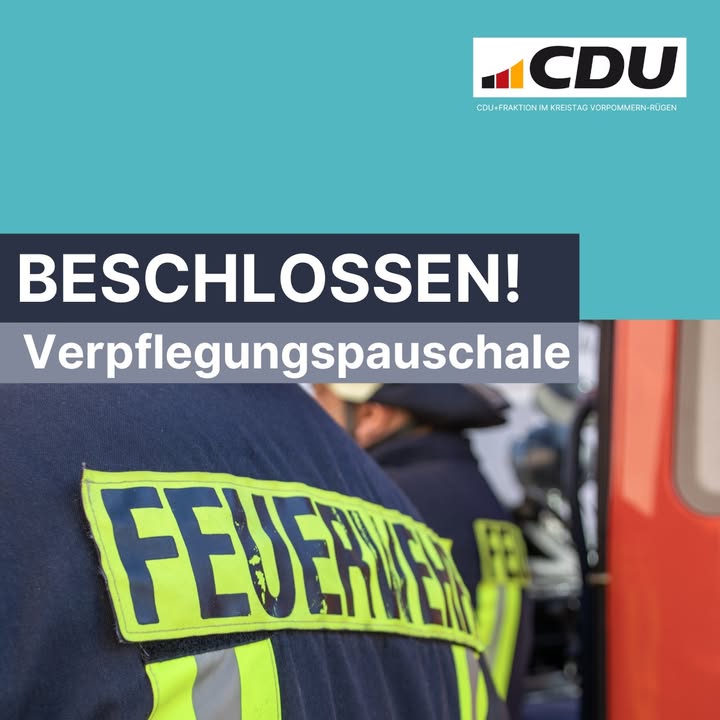 mehr🚒 Unterstützung unserer FeuerwehrenLiebe Feuerwehrkameradinnen und Feuerwehrkameraden,ihr leistet Aus- und Weiterbildungen oft in eurer Freizeit ? nach Feierabend, an Wochenenden und mit großem persönlichem Einsatz für die Sicherheit in unserem Landkreis. Das verdient Anerkennung, die auch konkret spürbar ist.Deshalb haben wir auf den Weg gebracht: 👉 Für Lehrgänge und Ausbildungen soll im Haushalt 2026 eine Verpflegungspauschale eingeplant werden.Das wurde auf unseren Antrag hin in der letzten Kreistagssitzung beschlossen. Danke für euren Dienst, eure Bereitschaft und euren Einsatz für unseren Landkreis. Wir stehen an eurer Seite.#CDUFraktionVR #Feuerwehr #Ehrenamt #Brandschutz #Katastrophenschutz #Danke #VorpommernRügen #Kreistag