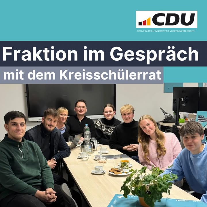 mehrDer Kreisschülerrat war zu Besuch bei uns und hat sich mit unserem Vorsitzenden @heinkebenjamin sowie unserer Fraktionsgeschäftsführerin @juliapraekel offen und konstruktiv ausgetauscht. Es war ein guter gegenseitiger Austausch, aus dem beide Seiten wichtige Impulse mitnehmen konnten.Ob Deutschlandticket, Digitalisierung oder Prävention und Medienbildung ? die angesprochenen Themen waren breit gefächert und spiegeln die aktuellen Anliegen der Schülerinnen und Schüler wider. Die Inhalte werden wir in unsere Arbeit im Kreistag einbinden.Wir wollen den Austausch weiterhin fortführen und die Zusammenarbeit verstetigen, damit die Perspektiven der Schüler auch künftig regelmäßig Gehör finden.Denn: BILDUNG IST UNSERE ZUKUNFT !!! #kreisschülerrat #cdufraktionvr #cduvr #jugendmitwirkung #politiktrifftschule