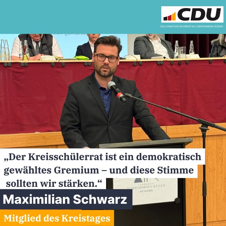 📌 Kreisschülerrat stärken ? Jugendbeteiligung ernst nehmenDer Kreistag hat den gemeinsamen Prüfantrag zur Unterstützung des @kreisschuelerrat_vr zugestimmt. Ausgangspunkt war der Austausch mit dem Kreisschülerrat im Januar. Dabei wurde deutlich, mit wie viel Engagement und Verantwortungsbewusstsein die Schülerinnen und Schüler ihre Aufgaben wahrnehmen ? und welche Themen sie bewegen.Die Beteiligung junger Menschen ist kein Nebenthema ? sie ist ein wichtiger Bestandteil unserer Demokratie.@maximilianschwarz meinte dazu:🗣️ "Der Kreisschülerrat ist kein ?nice to have?. Er ist ein demokratisch gewähltes Gremium ? und genau diese Stimme sollten wir stärken.Aktuell basiert die Arbeit des Kreisschülerrates vielfach auf ehrenamtlichem Engagement und privaten Mitteln ? etwa für Reisekosten oder organisatorische Aufgaben. Für uns ist das nicht ausreichend."➡️ Deshalb haben wir gemeinsam mit BÜNDNIS 90/DIE GRÜNEN, SPD und DIE LINKE einen Prüfauftrag eingebracht:Der Landrat soll prüfen, ob und in welchem Umfang eine finanzielle Unterstützung möglich ist.Dabei gilt für uns:Verantwortungsvoll handeln ? auch mit Blick auf die Haushaltslage.Aber ebenso klar ist:Demokratie darf nicht am Geld scheitern ? schon gar nicht bei jungen Menschen.➡️ Unser Ziel:Jugendbeteiligung stärken, Engagement ermöglichen und die Stimme junger Menschen im Landkreis dauerhaft einbinden.#VorpommernRügen #Kreistag #Jugendbeteiligung #Demokratie #Schülervertretung #CDUFraktion