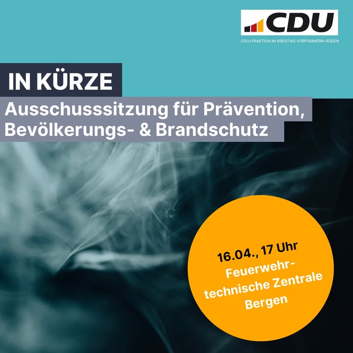 mehr📌 Sitzungswoche im Landkreis Vorpommern-RügenIn dieser Woche tagen gleich zwei wichtige Ausschüsse des Kreistages:🗓 Dienstag, 14.04.2026➡️ Ausschuss für Soziales und Gesundheit🗓 Donnerstag, 16.04.2026➡️ Ausschuss für Prävention, Bevölkerungs- und BrandschutzIn den Ausschüssen werden zentrale Themen für unseren Landkreis beraten ? von Gesundheitsversorgung und sozialen Fragen bis hin zu Sicherheit, Katastrophenschutz und Prävention.➡️ Unser Anspruch:Verlässliche Strukturen, gute Versorgung und Sicherheit für die Menschen vor Ort.#VorpommernRügen #Kreistag #Ausschuss #Gesundheit #Sicherheit #CDUFraktion #WirGestalten