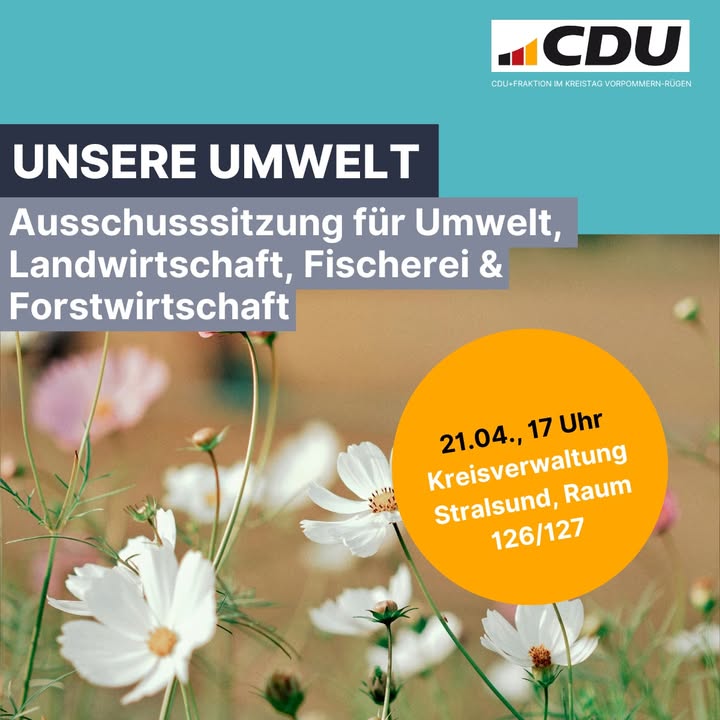📌 Ausschuss für Umwelt, Landwirtschaft, Fischerei- und ForstwirtschaftAm Dienstag, 21. April 2026 berät der zuständige Fachausschuss des Landkreises Vorpommern-Rügen in Stralsund zu diesen Themen:🌿 Naturschutz im LandkreisBeratung über eine neue Richtlinie zur Förderung von Maßnahmen im Naturschutz.🗑️ Sperrmüll und ZuständigkeitenThema sind mögliche Erstattungsansprüche der Hansestadt Stralsund gegenüber dem Landkreis.🌳 Baumbestand im LandkreisDiskussion eines Antrags zur Erhöhung des Baumbestandes sowie eines Änderungsantrags.🗣️ EinwohnerfragestundeRaum für Fragen und Anliegen aus der Bevölkerung.Gerade in diesem Ausschuss zeigt sich, wie wichtig es ist, Umweltschutz, kommunale Verantwortung und praktische Lösungen vor Ort zu vereinen.➡️ Unser Ziel:Nachhaltige Entwicklung mit Augenmaß ? für Natur, Kommunen und die Menschen im Landkreis.#VorpommernRügen #Ausschuss #Umwelt #Landwirtschaft #Naturschutz #Kreistag #CDUFraktion