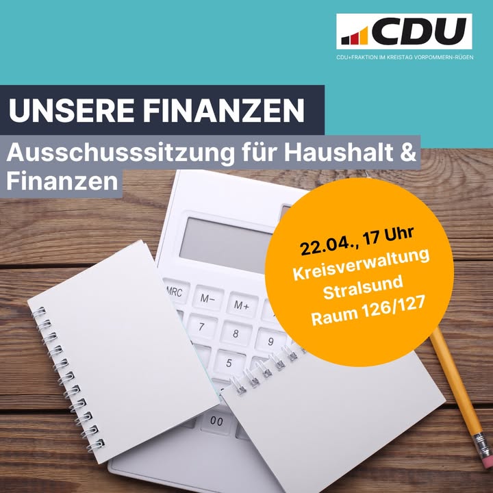 mehr📌 Sitzungswoche im Landkreis Vorpommern-RügenAuch in der kommenden Woche stehen wichtige Beratungen in den Ausschüssen an:🗓 Dienstag, 21.04.2026⏰ 17:00 Uhr📍 Raum 126/127, Kreisverwaltung➡️ Ausschuss für Umwelt, Landwirtschaft, Fischerei- und Forstwirtschaft🗓 Mittwoch, 22.04.2026⏰ 17:00 Uhr📍 Raum 126/127, Kreisverwaltung➡️ Haushalts- und FinanzausschussIn den Ausschüssen werden zentrale Themen für unseren Landkreis vorbereitet ? von Umwelt und Landwirtschaft bis hin zu Finanzen und Haushaltsplanung.➡️ Unser Anspruch:Nachhaltige Entwicklung, verantwortungsvoller Umgang mit Ressourcen und solide Finanzen für unseren Landkreis.#VorpommernRügen #Kreistag #Ausschuss #Umwelt #Landwirtschaft #Finanzen #CDUFraktion