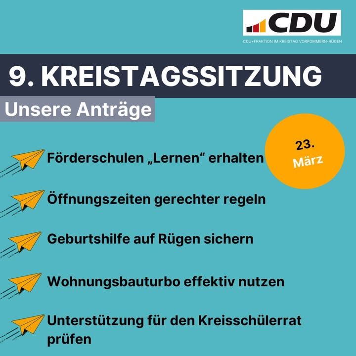mehr⭐ Jahresrückblick 2025Das Jahr 2025 war geprägt von intensiven Debatten, wichtigen Entscheidungen und vielen Themen, die unseren Landkreis bewegt haben.Als CDU+Fraktion haben wir Verantwortung übernommen ? im Kreistag, in den Ausschüssen und im direkten Austausch mit den Bürgerinnen und Bürgern.Im Mittelpunkt standen dabei klar strukturierte Schwerpunkte, die uns das ganze Jahr über begleitet haben.💶 Kommunalfinanzen & HaushaltDie finanzielle Situation der Kommunen war eines der zentralen Themen dieses Jahres.Wir haben uns für eine stabile Kreisumlage 2026, eine solide Haushaltsplanung und eine dringend notwendige Reform des Finanzausgleichsgesetzes (FAG) eingesetzt.Zudem war uns wichtig, die Kosten gerechter zwischen Land und Kommunen zu verteilen und damit Städten und Gemeinden mehr Handlungsspielräume zu ermöglichen.➡️ Ohne verlässliche Finanzen kann ein Landkreis nicht funktionieren.🚒 Feuerwehr, Brandschutz & Katastrophenvorsorge2025 stand stark im Zeichen der Sicherheit.Wir möchten ein klares Zeichen der Wertschätzung gegenüber den Frauen und Männern setzen, die sich tagtäglich für den Schutz unserer Region einsetzen.Dazu gehört auch unser Antrag zur Verpflegungspauschale für Feuerwehr-Lehrgänge.➡️ Sicherheit verdient Unterstützung ? und echte Anerkennung.⚓ LNG-Mukran: Transparenz & BeteiligungDas LNG-Projekt in Mukran hat uns auch in diesem Jahr intensiv begleitet.Wir haben uns für maximale Transparenz eingesetzt ? durch die Offenlegung aller relevanten Unterlagen, eine öffentliche Anhörung, klare Antworten des Landes sowie die Einhaltung der ursprünglich zugesagten Landstrom-/KWK-Lösung.➡️ Unser Anspruch: Transparenz, Rechtsstaatlichkeit und Schutz der Tourismus- und Naturregion Rügen.🌿 Umwelt, Landwirtschaft & regionale Entwicklung2025 war geprägt von grundlegenden Strukturfragen: Verkehrskonzept an der Schaabe, Energieversorgung, landwirtschaftliche Herausforderungen, regionale Wertschöpfung sowie der Schutz unserer Kulturlandschaften. Wir haben auch daran gearbeitet, dass der Nahverkehr im gesamten Landkreis besser aufgestellt ist. Sehr erfreulich, dass die erste Rufbuslinie auf Rügen installiert wurde und auch weitere Regionen besser angebunden worden konnten. Auch ein Fortschritt: Alle Busfahrpläne werden auf unsere Initiative hin sukzessive digitalisiert und so auf Google Maps verfügbar gemacht.➡️ Als großer Flächenlandkreis müssen wir mehr Wege, größere Entfernungen und komplexere Bedingungen organisieren ? das wurde in vielen Ausschüssen deutlich.👶 Geburtshilfe Stralsund & Unterstützung der HebammenEin zentrales Thema des Jahres war der Erhalt der Geburtshilfe in Stralsund. Mit unserem Dringlichkeitsantrag haben wir uns klar für die Beleghebammen und für eine wohnortnahe Versorgung ausgesprochen. Wir setzen weiterhin alles daran, dem Ärztemangel entgegenzuwirken und die Attraktivität unseres Standortes zu erhöhen.➡️ Familien brauchen verlässliche Strukturen ? direkt vor Ort.👧 Jugend, Bildung & soziale ThemenJunge Menschen standen 2025 stark im Fokus: von der Förderung von Projekten der Kinder- und Jugendarbeit über die Stärkung des erzieherischen Kinder- und Jugendschutzes bis hin zu Richtlinien für Kindertageseinrichtungen. Ein Erfolg: Auch Vorschüler fahren künftig kostenfrei Bus.➡️ Uns war wichtig, Beteiligungsmöglichkeiten für Kinder und Jugendliche weiter zu stärken und soziale Strukturen zu sichern.🙌 Ehrenamt & Engagement2025 war ein starkes Jahr für das Ehrenamt.Wir haben auf zahlreiche Förderprogramme hingewiesen, Engagierte unterstützt und Aktionen rund um den Tag des Ehrenamtes begleitet.Der Austausch mit Vereinen, Initiativen und Feuerwehren hat gezeigt, wie viel Kraft unsere Region aus dem Ehrenamt schöpft.➡️ Ehrenamt ist die tragende Säule unseres Landkreises.🏛️ Fraktionsarbeit & strategische WeichenstellungenMit klaren Positionierungen im Kreistag, intensiver Ausschussarbeit und unserer Klausurtagung im November haben wir die Schwerpunkte für 2026 vorbereitet.💬 Fazit2025 war herausfordernd ? aber auch richtungsweisend.Wir bedanken uns für den Austausch, das Vertrauen und die vielen Gespräche mit Bürgerinnen und Bürgern, Ehrenamtlichen, Vereinen, Feuerwehren, Initiativen und Institutionen im gesamten Landkreis.➡️ Mit Zuversicht blicken wir auf 2026: für einen handlungsfähigen Landkreis, starke Gemeinden und eine Region, die zusammenhält.#CDUFraktionVR #Jahresrückblick2025 #Kommunalpolitik #VorpommernRügen #Feuerwehr #Daseinsvorsorge #Finanzen #Ehrenamt #Transparenz #Jugend #LNG #LandkreisVR