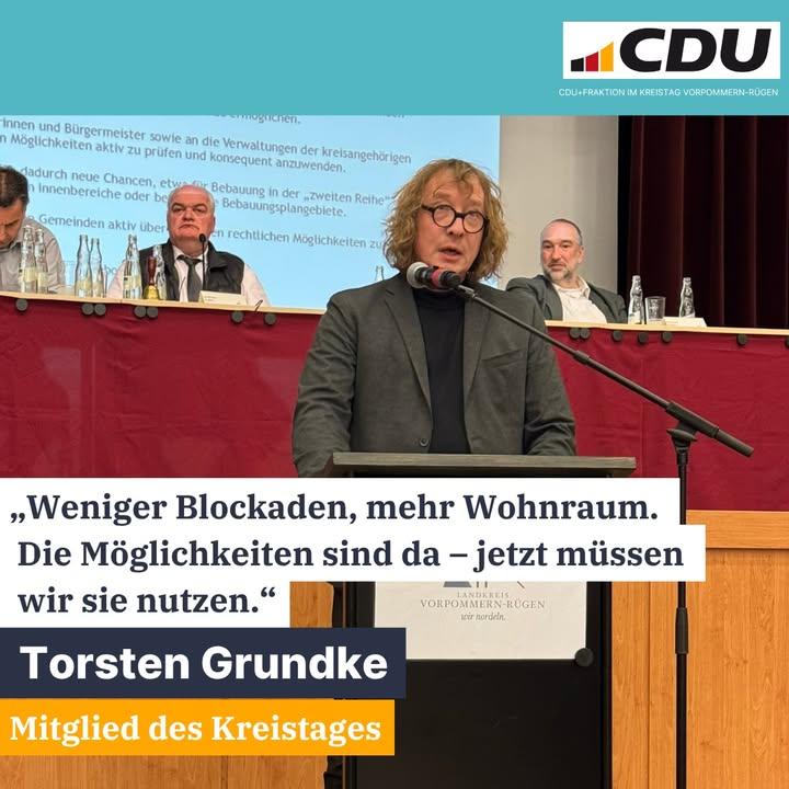 📌 Wohnungsbauturbo nutzen ? Chancen für mehr Wohnraum ergreifenMit unserem Antrag hat der Kreistag wichtige Impulse für mehr Wohnraum beschlossen.Die Ausgangslage ist klar:Auch im Landkreis Vorpommern-Rügen fehlt Wohnraum ? gerade im ländlichen Raum braucht es flexiblere und praxistaugliche Lösungen.Mit dem Wohnungsbauturbo gibt es jetzt ein neues Instrument, das genau das ermöglicht.Dazu Torsten Grundke:🗣️ "Der Wohnungsbauturbo verändert die Grundhaltung im Baurecht: Früher hieß es ?grundsätzlich nicht möglich? ? heute heißt es, grundsätzlich möglich, wenn es passt?. Das ist eine echte Chance für unsere Gemeinden."Diese Chancen müssen aktiv genutzt werden ? von den Gemeinden vor Ort.Der Landkreis soll dabei unterstützen: durch Information der Kommunen, Beratung und konkrete Hilfestellung➡️ Unser Ziel:Mehr Wohnraum schaffen, Hürden abbauen und Entwicklung im ländlichen Raum ermöglichen.#VorpommernRügen #Kreistag #Wohnungsbau #LändlicherRaum #CDUFraktion #WirGestalten