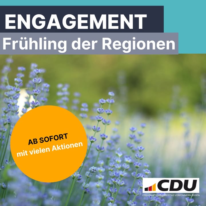 📌 Frühling der Regionen ? Engagement vor Ort stärkenNoch bis zum 21. Juni läuft bundesweit die Aktion "Frühling der Regionen" der Allianz der Gestalter:innen.Ob Frühlingsfeste, Frühjahrsputz oder Dialogformate ? überall in Deutschland wird gezeigt:👉 Gesellschaftliche Veränderung beginnt vor Ort.Auch Vereine, Initiativen und engagierte Gruppen in Vorpommern-Rügen können mitmachen:💡 Eigene Aktionen einbringen💰 Unterstützung von bis zu 800 ? möglichGerade in unserem Landkreis zeigt sich immer wieder:Viele positive Entwicklungen entstehen dort, wo Menschen selbst aktiv werden und Verantwortung übernehmen.➡️ Unser Anspruch:Engagement vor Ort stärken und gute Ideen sichtbar machen.🔗 Mehr Infos & Mitmachen:allianz-der-gestalterinnen.org/mitmachen/#VorpommernRügen #Engagement #Ehrenamt #Region #Mitmachen #cdufraktionvr